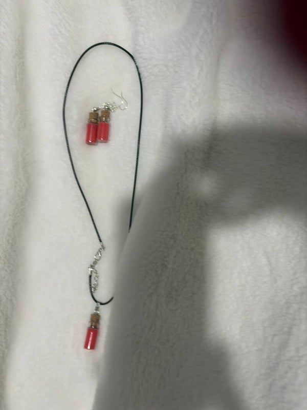 Your favorite color of sand in the cork bottle with Hyperallergic earrings and necklace